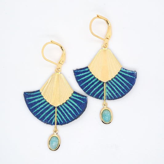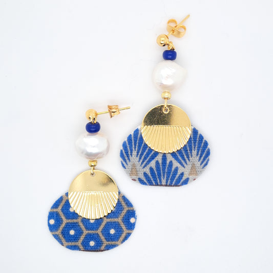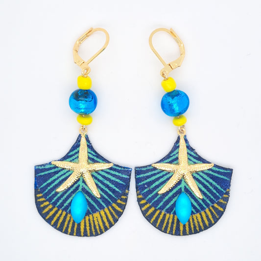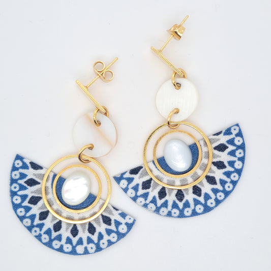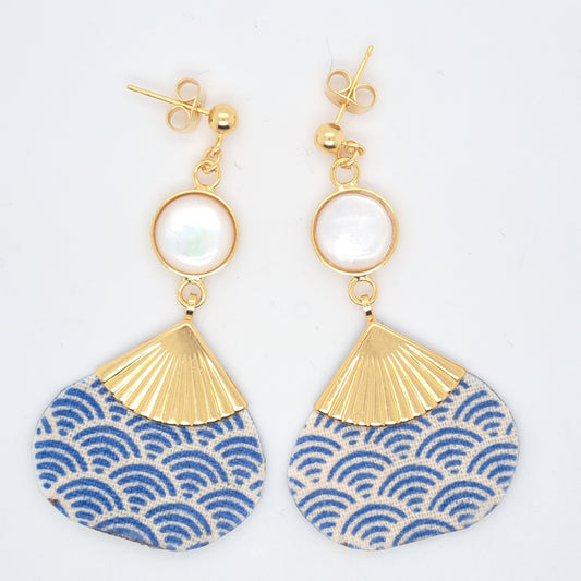 مروحة بحار - أقراط من قماش عرق اللؤلؤ الأزرق والفضة