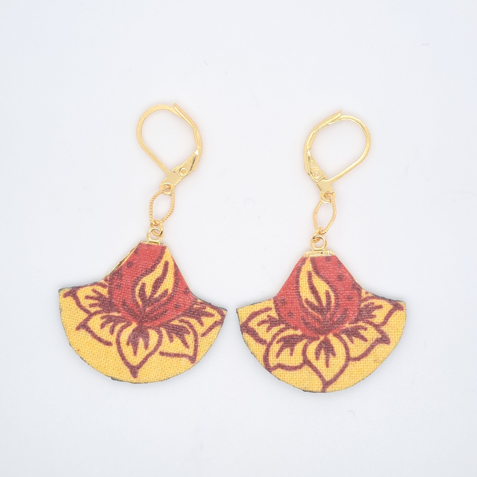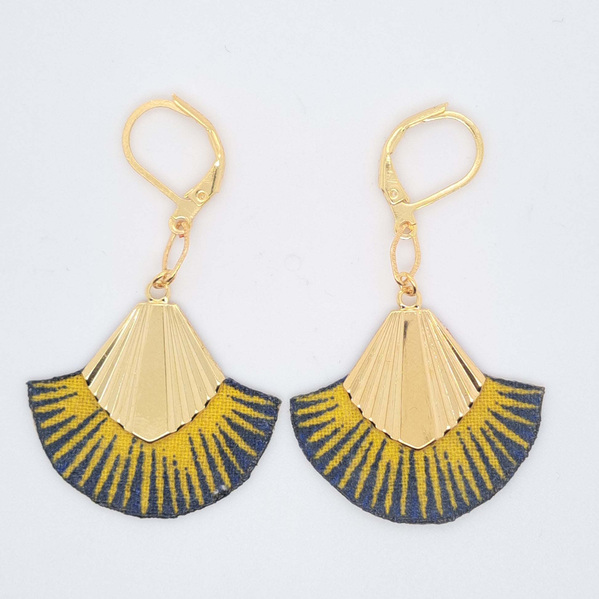 Boucles d’oreilles en tissu. Produit de grande qualité doré à l'or fin 24K. Epaisseur d’or 0.5 micron très nettement supérieure à celle du doré « flash » couramment utilisé.