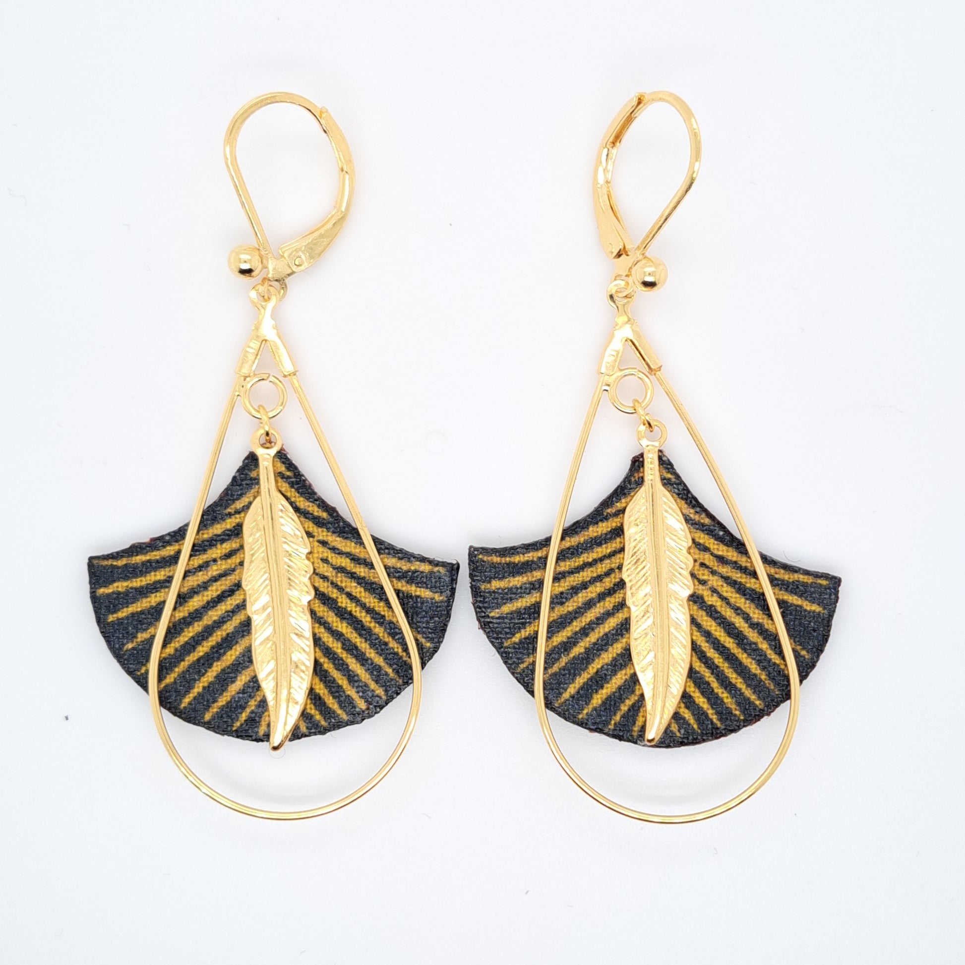 أقراط من القماش مع حلقات متدلية. منتج عالي الجودة، نحاس مطلي بالذهب الخالص عيار 24. سمك الذهب 0.5 ميكرون أكبر بكثير من سمك الذهب "الفلاش" الشائع الاستخدام.