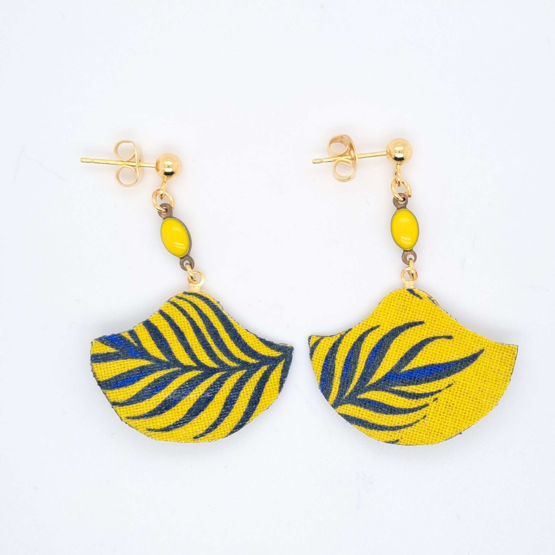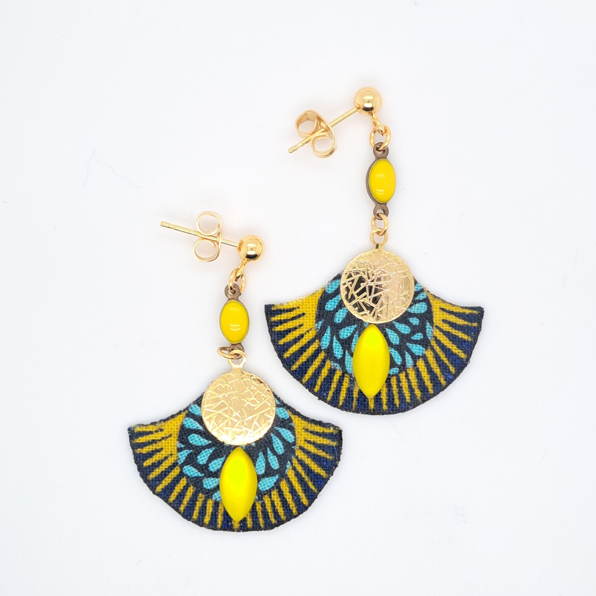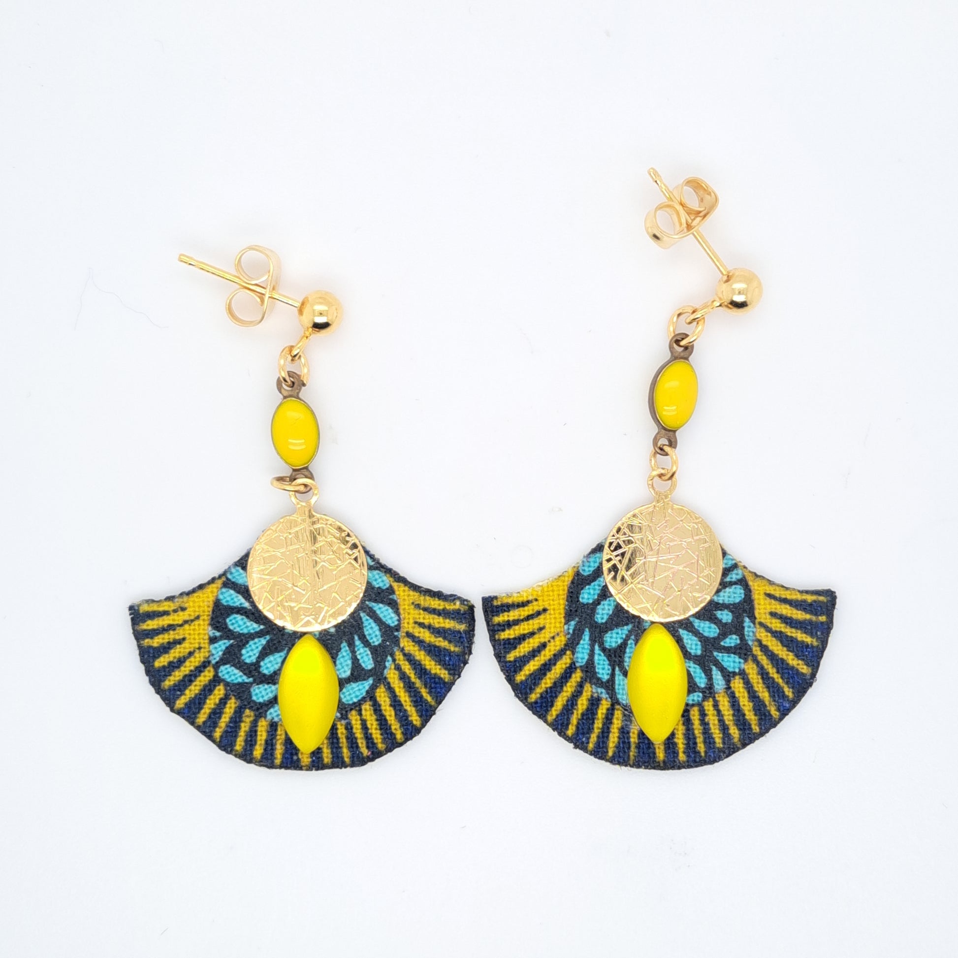 اكتشفي اللمعان والانعكاسات الزرقاء مع زوج أقراط Goa ، وهي قطعة فريدة من النحاس الذهبي مع خرزات الأمازونيت وعين النمر.