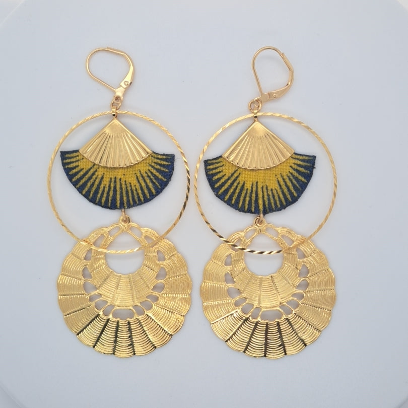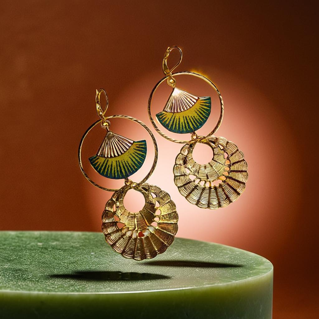 أشيد بهؤلاء الأشخاص، بدو البحر في أرخبيل ميرغي الواقع بين تايلاند وبورما. زوج أقراط موكين هو قطعة ذهبية فريدة من نوعها معززة بالأمازونيت.
