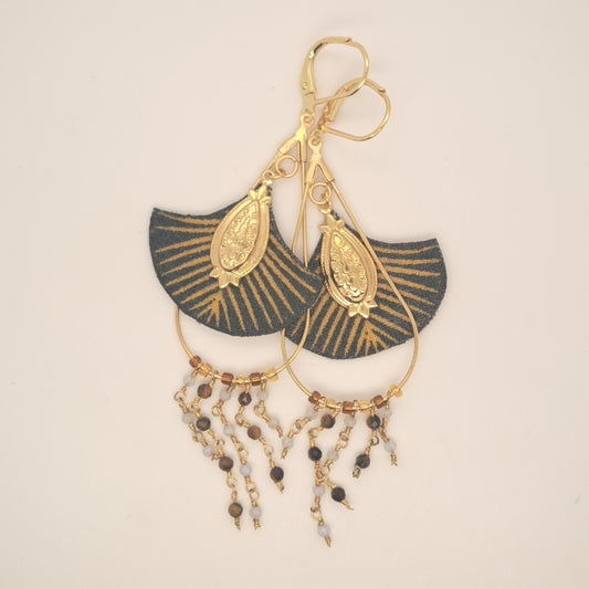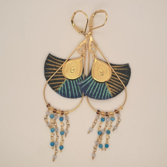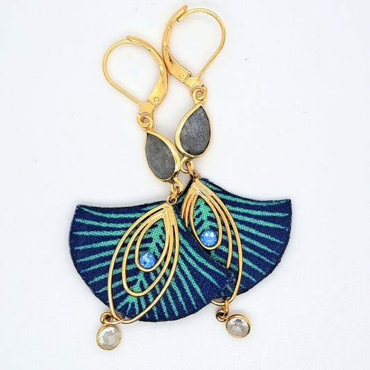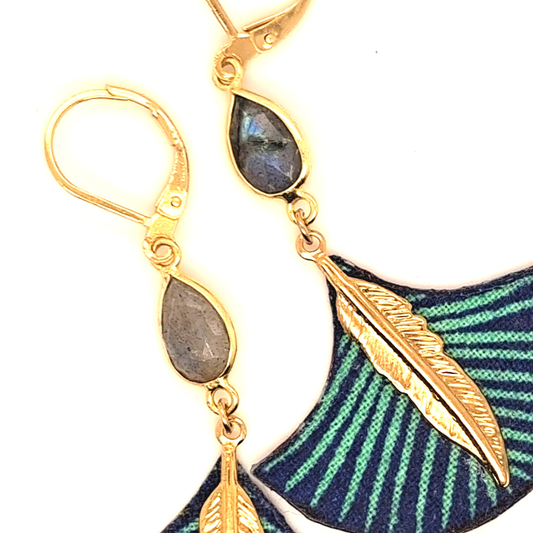 Hatchepsout - Boucles d'oreilles pendantes labrodorite et zircon