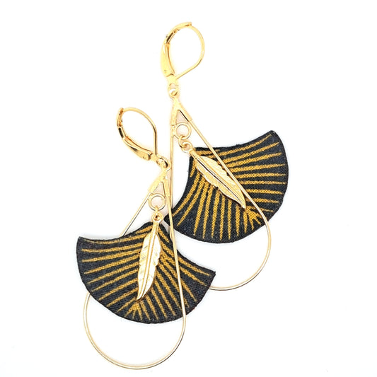 Golden Feather - Gold-plated feather fabric drop hoop earrings