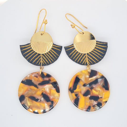 Douala Circle - Gold plated and orange Citrine fabric earrings