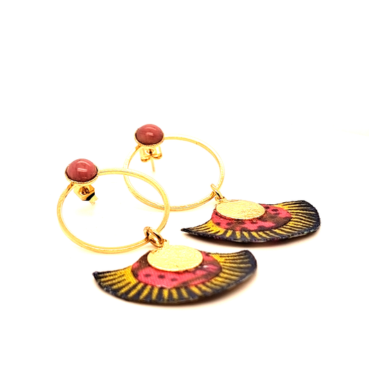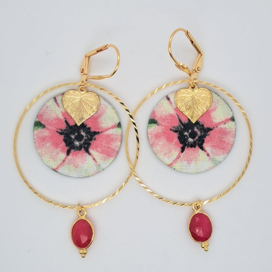 Sakura - Pink agate hoop earrings