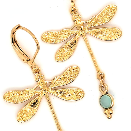 Tender Dragonfly - Grey Tourmaline Gold Dangle Earrings