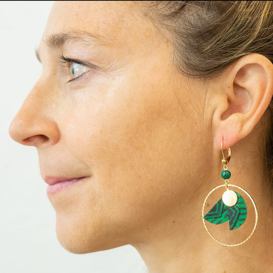 Taman Negara - Green Malachite Hoop Earrings