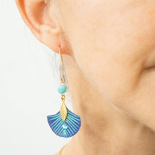Vibrant Pacifique - Gold Plated Blue Amazonite Fabric Dangle Earrings