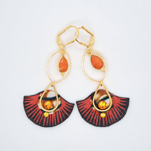 Douala Circle - Gold plated and orange Citrine fabric earrings