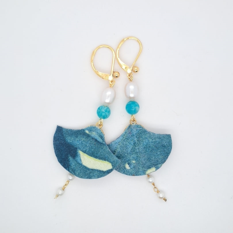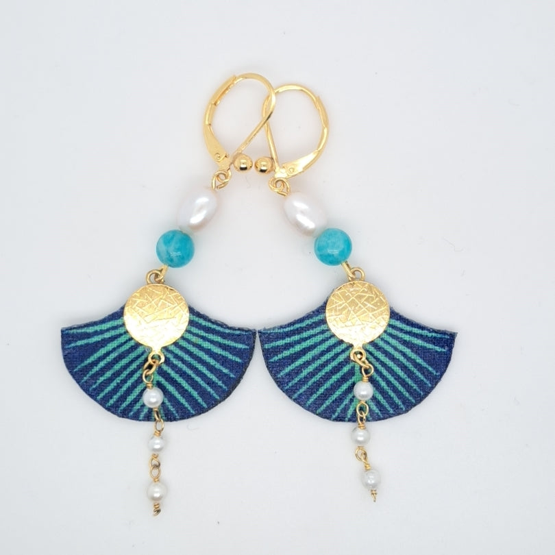 Dive into the shades of blue with the pair of Cozumel earrings, an island in the Caribbean Sea, "land of swallows" in Yucatec Mayan. This unique piece is made of brass gilded with fine gold and lapis lazuli.